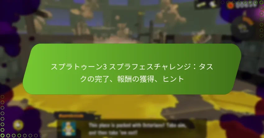 スプラトゥーン3のスプラフェスチャレンジは、スプラフェスイベント中にプレイヤーが完了できるユニークなタスクを提供し、チームスピリットを示しながら貴重な報酬を獲得することができます。戦略的なゲームプレイと効果的なチームワークに焦点を当てることで、プレイヤーはパフォーマンスを最大化し、これらのチャレンジに成功することができます。これらの活動に参加することで、ゲームプレイ体験が向上するだけでなく、独占的なゲーム内アイテムや現実世界の賞品も得られるため、スプラフェスイベントはすべての参加者にとってスリリングな機会となります。 スプラトゥーン3のスプラフェスチャレンジとは? スプラトゥーン3のスプラフェスチャレンジは、スプラフェスイベント中にプレイヤーが報酬を獲得し、ゲームプレイ体験を向上させるために完了できる特別なタスクです。これらのチャレンジは種類や難易度が異なり、プレイヤーが選んだチームを代表しながらさまざまな活動に参加することを促します。 スプラフェスイベント中のチャレンジの種類 スプラフェスチャレンジは、異なるスキルや戦略をテストするために設計されたさまざまな形態で提供されます。プレイヤーは以下の種類のチャレンジに遭遇することが期待されます: バトルチャレンジ:設定された数のバトルを完了してポイントを獲得します。 チームチャレンジ:チームと協力して特定の目標を達成します。 個人チャレンジ:対戦相手を倒したり、試合に勝ったりするなど、個人的な成果に焦点を当てます。 特別イベントチャレンジ:特定のスプラフェステーマ中に現れるユニークなタスクです。 スプラフェスチャレンジの構造と期間 スプラフェスチャレンジは、通常約48時間続くスプラフェスイベントの全体的な期間に合わせて構成されています。この期間中、プレイヤーは自分のペースでさまざまなチャレンジに参加できます。 各チャレンジには定義された時間枠があり、プレイヤーはイベントの特定の時間内にタスクを完了する必要がある場合があります。参加と報酬を最大化するために、ゲームセッションを計画することが重要です。 スプラフェスチャレンジへの参加基準 スプラフェスチャレンジに参加するには、プレイヤーはまずスプラフェス中に好みの側を選択してチームに参加する必要があります。この選択は、利用可能なチャレンジと獲得できる報酬を決定するため、重要です。 さらに、プレイヤーは特定のチャレンジに対するレベル要件や前提条件を満たしていることを確認する必要があります。一部のタスクは、より高いスキルレベルや経験を持つプレイヤーにとってアクセスしやすい場合があります。 プレイヤーのパフォーマンスがチャレンジの結果に与える影響 プレイヤーのパフォーマンスは、スプラフェスチャレンジの結果に大きな影響を与えます。バトルに勝ち、個人的な目標を達成することは、全体的なチャレンジの完了とチームの成功に寄与します。 パフォーマンスレベルが高いほど、独占的なアイテムやゲーム内通貨を含むより良い報酬を得ることができます。プレイヤーは、成功の可能性を高めるために戦略を立て、チームメイトとコミュニケーションを取ることが奨励されます。 チャレンジが各スプラフェスでどのように進化するか 新しいスプラフェスごとに、チャレンジは新しいメカニクスやテーマを導入するために進化する場合があります。これにより、ゲームプレイ体験がダイナミックで魅力的になり、復帰プレイヤーにとっても楽しめるものとなります。 開発者は、プレイヤーのフィードバックや以前のイベントのパフォーマンスに基づいてチャレンジ基準を調整することが多く、チャレンジが関連性を保ち、楽しめるものになるようにしています。プレイヤーは、各スプラフェスの反復ごとに新しいタイプのチャレンジやユニークな報酬を期待できます。 スプラフェスチャレンジを効果的に完了するには? スプラフェスチャレンジを効果的に完了するには、戦略的なゲームプレイ、チームワーク、効率的なタスク管理に焦点を当てます。タスクの優先順位を付け、適切なキャラクターや武器を利用することで、パフォーマンスと報酬を大幅に向上させることができます。 タスクを完了するための最適なゲームプレイ戦略 効果的なゲームプレイ戦略は、マップを理解し、チームの強みに基づいてアプローチを適応させることに基づいています。チームの構成や現在のスプラフェステーマに合った目標を優先します。 攻撃的および防御的な戦術の組み合わせを利用することで、マップの重要なエリアを制御できます。たとえば、チームに強力な攻撃プレイヤーがいる場合は、前進することに焦点を当て、防御プレイヤーが基地を確保します。 チームとコミュニケーションを取り、攻撃と防御を調整します。 相手チームの戦術に基づいて戦略を適応させます。 重要な瞬間にパワーアップや特