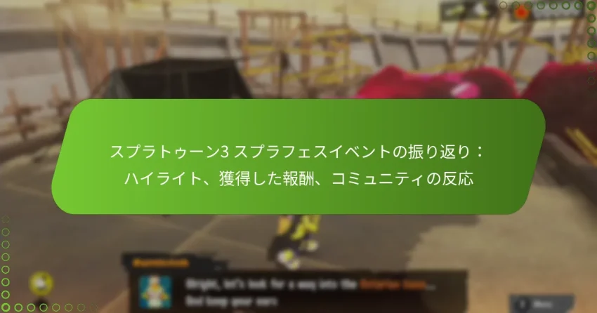 最近のスプラトゥーン3のスプラフェスイベントでは、エキサイティングな試合結果が生まれ、ユニークなプレイヤー戦略が披露され、コミュニティの大きな関与を引き出しました。参加者は、自分のパフォーマンスや関与に基づいて、コスメティックやギアポイントなどの独占的なゲーム内報酬を獲得できます。コミュニティの反応は、これらのイベントの認識を形成する上で重要な役割を果たし、今後の計画やプレイヤーの参加に影響を与えます。 最近のスプラトゥーン3のスプラフェスイベントからの主なハイライトは何ですか? 最近のスプラトゥーン3のスプラフェスイベントでは、スリリングな試合結果、ユニークな戦略、記憶に残るプレイヤーハイライトが披露されました。コミュニティはイベントに積極的に関与し、反応を共有し、特別なゲーム内報酬を祝いました。 最新のスプラフェスからの注目のゲームプレイ瞬間 最新のスプラフェスでは、いくつかの試合がその激しさと予想外の展開で際立ちました。最も話題になった瞬間の一つは、チームAによる最後の瞬間のカムバックで、彼らは勝利を確保するために最後の数秒で流れを変えました。 プレイヤーは、協調したチームプッシュやサプライズアンブッシュなどの革新的な戦略を採用し、相手を緊張させました。これらの戦術は、個々のスキルを示すだけでなく、成功を収めるためのチームワークの重要性も強調しました。 ファンはソーシャルメディアでこれらのエキサイティングな瞬間のクリップを共有し、イベントへの興奮をさらに高めました。スキルフルなプレイとドラマティックなフィニッシュの組み合わせは、このスプラフェスを特に記憶に残るものにしました。 イベント中に導入されたユニークなチャレンジ このスプラフェスでは、プレイヤーの適応力と戦略を試すいくつかのユニークなチャレンジが導入されました。特に注目すべきチャレンジは、チームが限られたリソースを管理しながら目標を達成する必要があるもので、プレイヤーはアプローチについて創造的に考えることを強いられました。 別のチャレンジでは、特定の武器制限があり、プレイヤーは異なるロードアウトを試すことを奨励されました。これにより、ゲームプレイにバラエティが加わり、プレイヤーは快適ゾーンから抜け出すことができました。 これらのチャレンジはコミュニティから好評を得て、イベントに深みを加え、プレイヤーがスキルを磨くことを促しました。多くの参加者は、新しいゲームプレイのダイナミクスにより、より関与を感じたと報告しています。 際立った特別なゲーム内出来事 スプラフェスの間、いくつかの特別なゲーム内出来事がプレイヤーを喜ばせました。ハイライトの一つは、珍しいキャラクターのサプライズ登場で、参加者にユニークな報酬やボーナスを提供しました。この予想外の展開は、興奮と期待の要素を加えました。 さらに、プレイヤーは短時間で能力を強化する限定のパワーアップに遭遇し、混沌としたスリリングなゲームプレイの瞬間を生み出しました。これらのパワーアップは戦略的に配置され、プレイヤーがアドバンテージをつかむ機会を生み出しました。 これらの特別な出来事の組み合わせは、活気ある雰囲気に寄与し、スプラフェスをダイナミックで没入感のあるものにしました。プレイヤーは、これらの要素が試合にもたらすバラエティと予測不可能性を評価しました。 チームパフォーマンスと際立ったプレイヤー スプラフェス中のチームパフォーマンスは、さまざまな戦略とスキルレベルを示しました。特に、チームBは常に強い協調性を示し、強力な対戦相手に対して印象的な勝利を収めました。 いくつかの際立ったプレイヤーが現れ、その卓越したゲームプレイで認識を得ました。正確な狙いと迅速な意思決定で知られる一人のプレイヤーはファンのお気に入りとなり、そのパフォーマンスで他のプレイヤーにインスピレーションを与えました。 これらの際立ったプレイヤーは、ソーシャルメディアでヒントや戦略を共有し、コミュニティの感覚を育み、他のプレイヤーがスキルを向上させることを促しました。彼らの影響は、イベント全体の競争心を高めるのに役立ちました。 イベント中のコミュニティの関与 スプラフェスを取り巻くコミュニティの関与は活気に満ちていました。プレイヤーはTwitterやDiscordなどのプラットフォームで自分の体験を積極的に共有し、戦略や記憶に残る瞬間について活発な議論を生み出しました。 イベントに関連するファンアートやミームがソーシャルメディアに溢れ、スプラトゥーンコミュニティの創造性を示しました。この関与は、個々の成果を祝うだけでなく、プレイヤー間の絆を強化しました。 ゲーム内イベントや投票はさらに参加を促し、プレイヤーが自分の意見や好みを表明できるようにしました。仲間意識と共有された興奮の感覚が、このスプラフェスを真にコミ